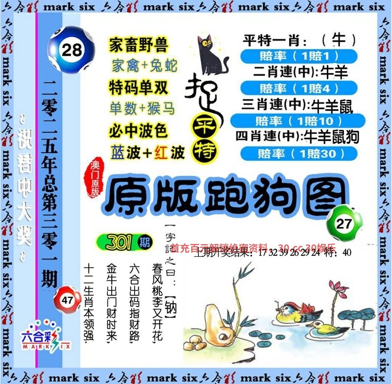 | 301期六肖 | 鼠猪狗猴牛马 | 开:牛05 |