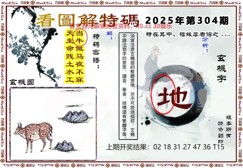 | 304期:正版【猜特输尽光】开马48准 【今期买牛输尽光,本宜新枝泉水少】 |